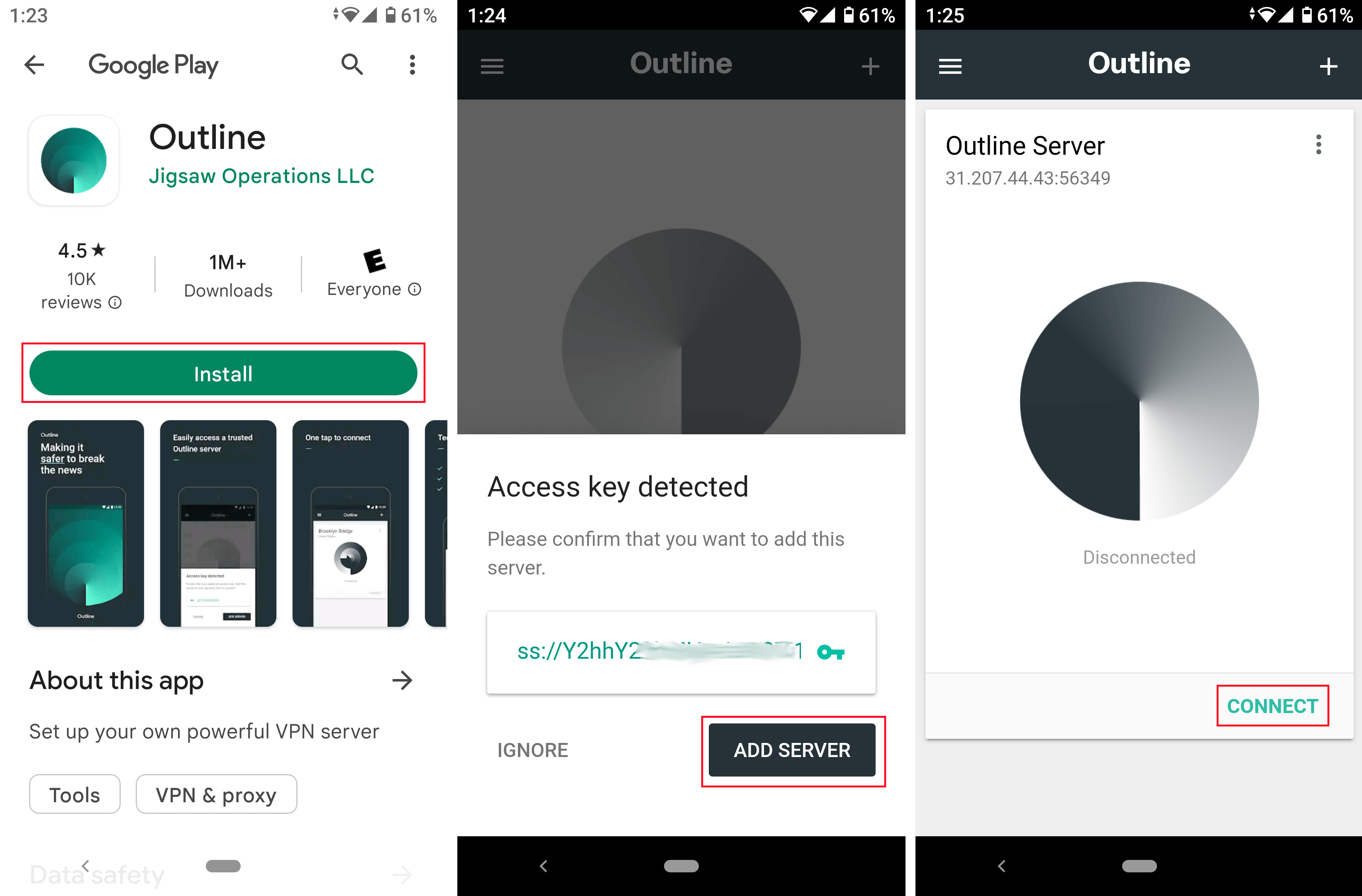 Step 6: Set up the Outline VPN client on your smartphone¶