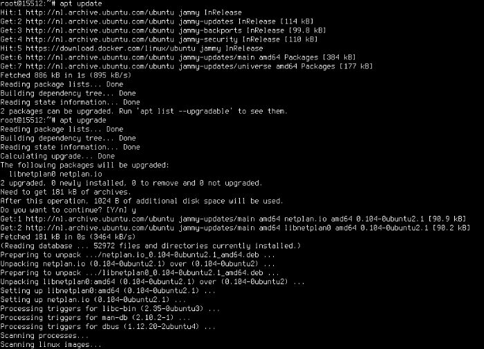 Once connected, it is worth updating the software installed on the server with two commands (this step can be skipped):