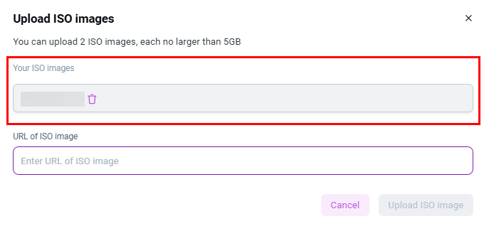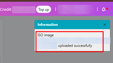 Upload ISO imagebutton to start transferring the ISO image: