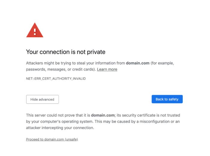 - NET::ERR_CERT_COMMON_NAME_INVALID (certificate does not match the domain)