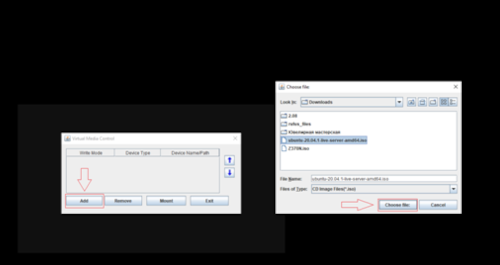 A window for adding ISO will appear. Press add > ISO file > select ISO image >> Choose file >> mount: