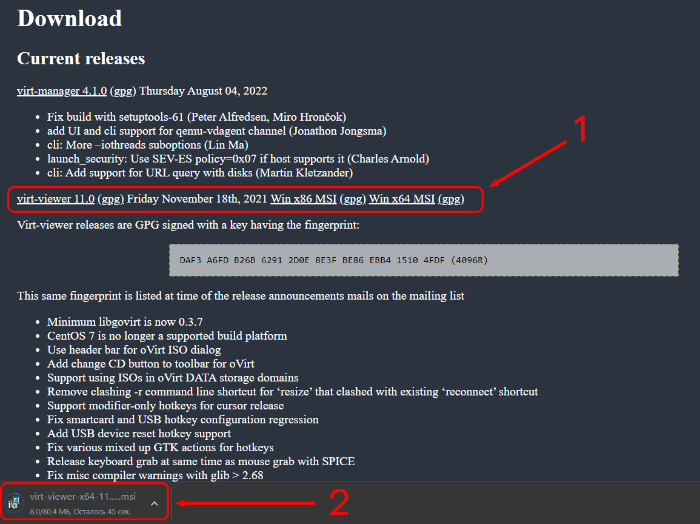 Go to the official website of virt-viewer and download the installer appropriates architecture (x86 or x64) of the local device.