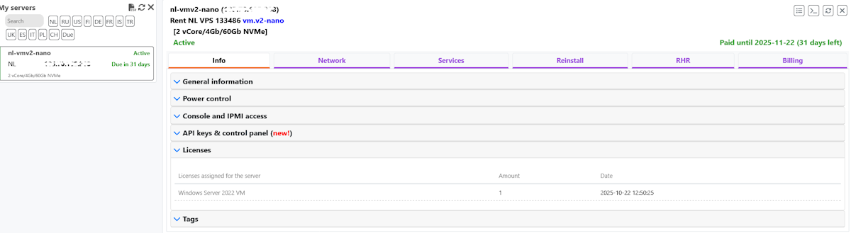 - Log in to Your Account on the HostKey website.