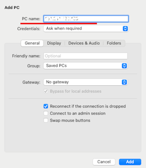 - PC name: IP address of the server