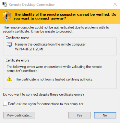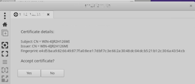 Connectand confirm the certificate (select Yes).