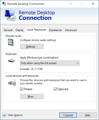 Built-in RDP Client (mstsc)¶