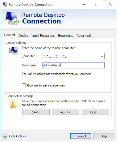 - Username (usually Administrator for Windows Server)