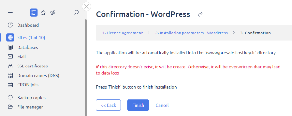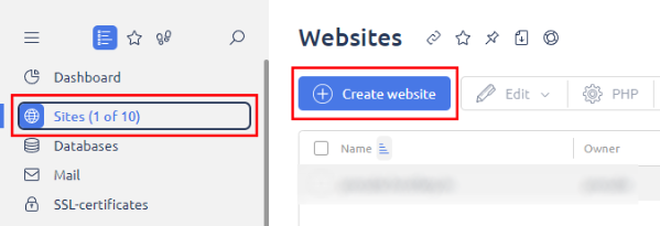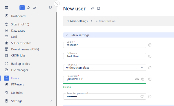 Similarly, it is not necessary to create an administrator account in advance if only one user with full access is needed. Just by starting to deploy a website or application on the hosting, you will automatically get a www-root user with maximum privileges. Using a single user simplifies administration - access rights are configured once when that user is created. In addition, all sites, databases, and files are available to this user without restrictions.