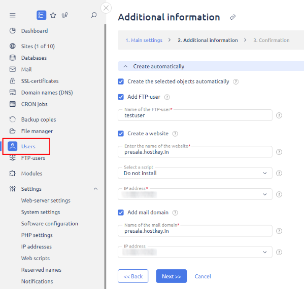 https://isp{Server_ID_from_Invapi}.hostkey.in:1500/ispmgr. The web interface will be accessible via both the link and the IP address.