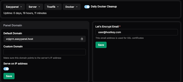 Detailed information on EasyPanel's main settings is available in the developers' documentation.