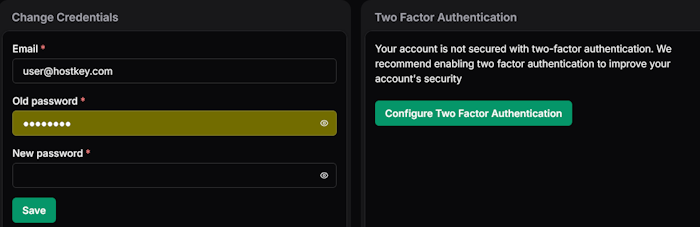 - Authentication - Here you can change the admin panel password and configure two-factor authentication (recommended).