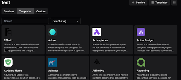- Built-in support for PostgreSQL, MySQL/MariaDB, Redis, MinIO, among other popular services