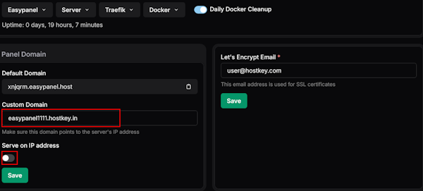- General - Set a custom domain for the panel here (enter your server's IP address upon first login).