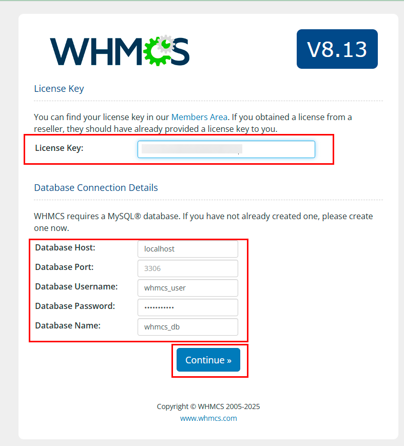 whmcs_user(database username); - Database Password: enter the password for database access (matches the password for SSH server connection);
