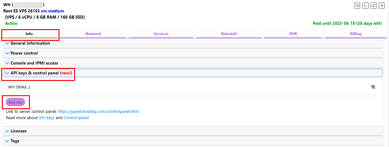 - Configuring HOSTKEY VPS/Dedicated Module