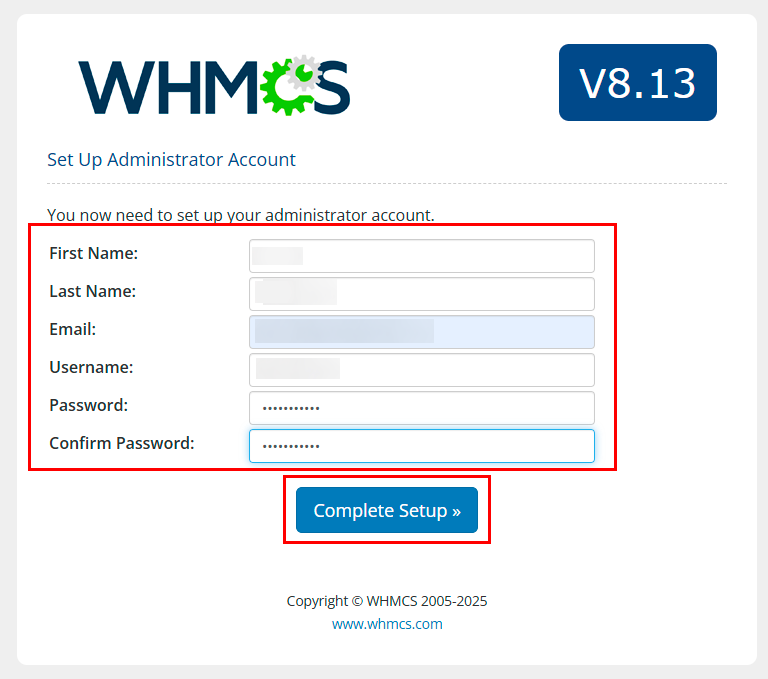 After filling all fields, click Complete Setup: