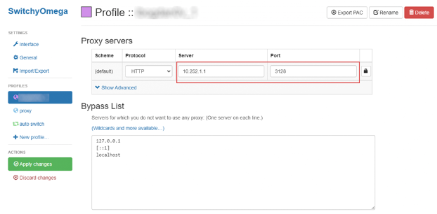 - The proxy server profile should become active and its name should appear at the top of the list in the SwitchyOmega menu.