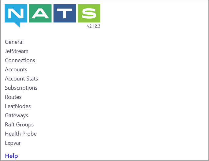 This interface is intended for administrators and developers who monitor the uptime and performance of the NATS system.