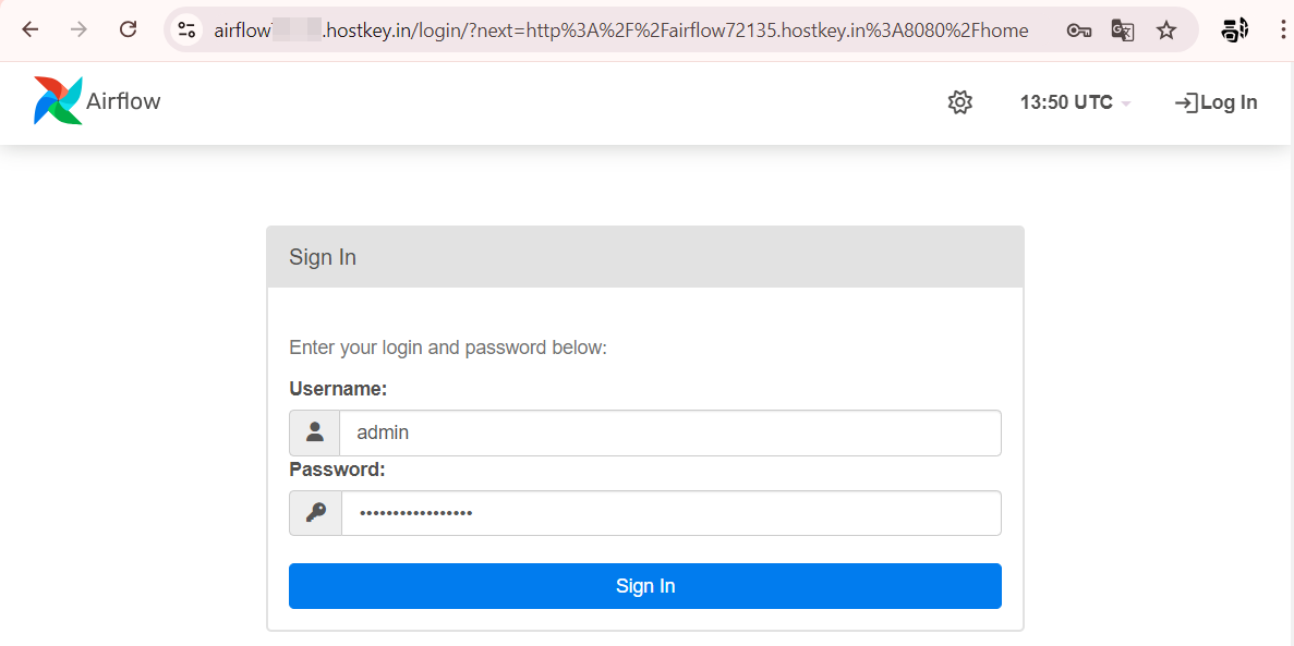 https://airflow{Server_ID_from_Invapi}.hostkey.in; - The installation time of the panel along with the OS takes about 15 minutes.