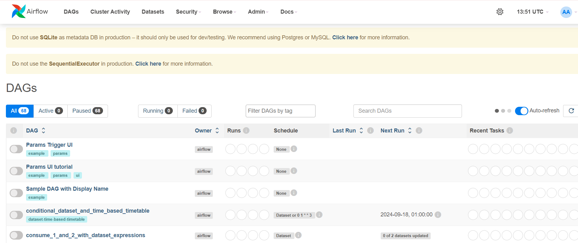 - The Airflow web interface provides an interactive overview of workflow status, allowing you to track task execution and manage them easily;