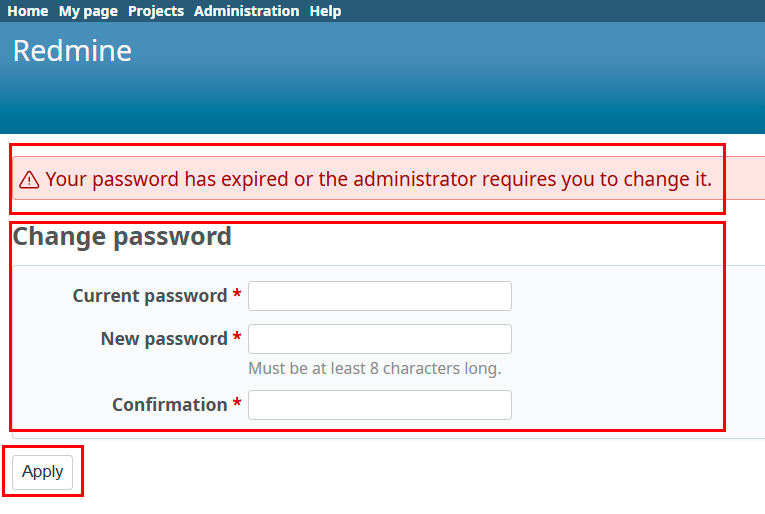 Your password has expired or the administrator requires you to change it; - On the password change page, fill out the fields: