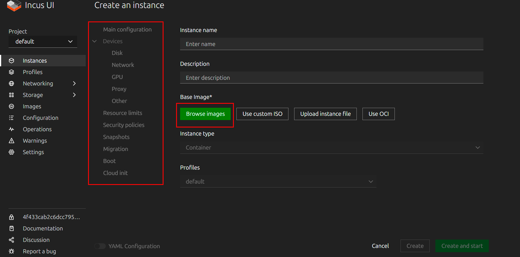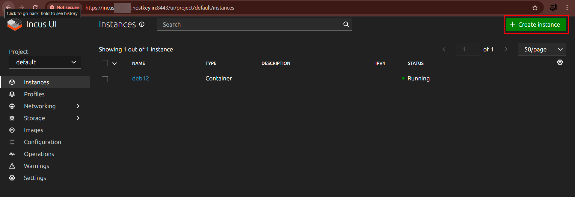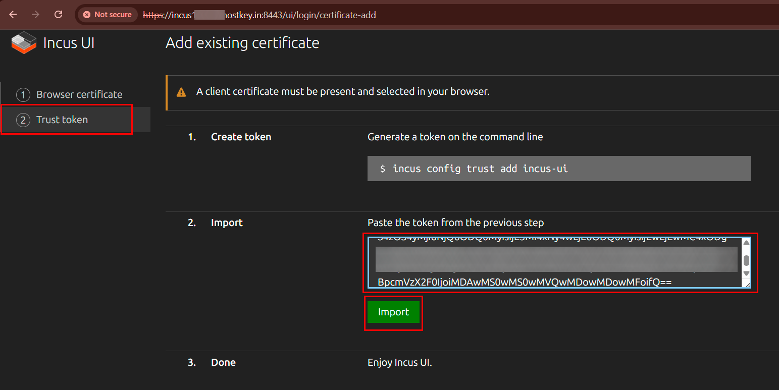 - Link to Access the Incus Web Interface: in tag webpanel (port 8443, HTTPS)