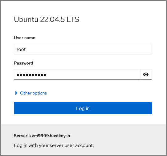 - On the login page, enter the server username and password (usually the account provided in the email or created by the administrator).
