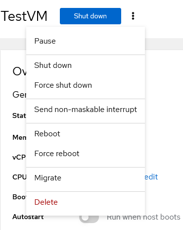 - Delete — delete the VM (with the option to delete associated virtual disks).