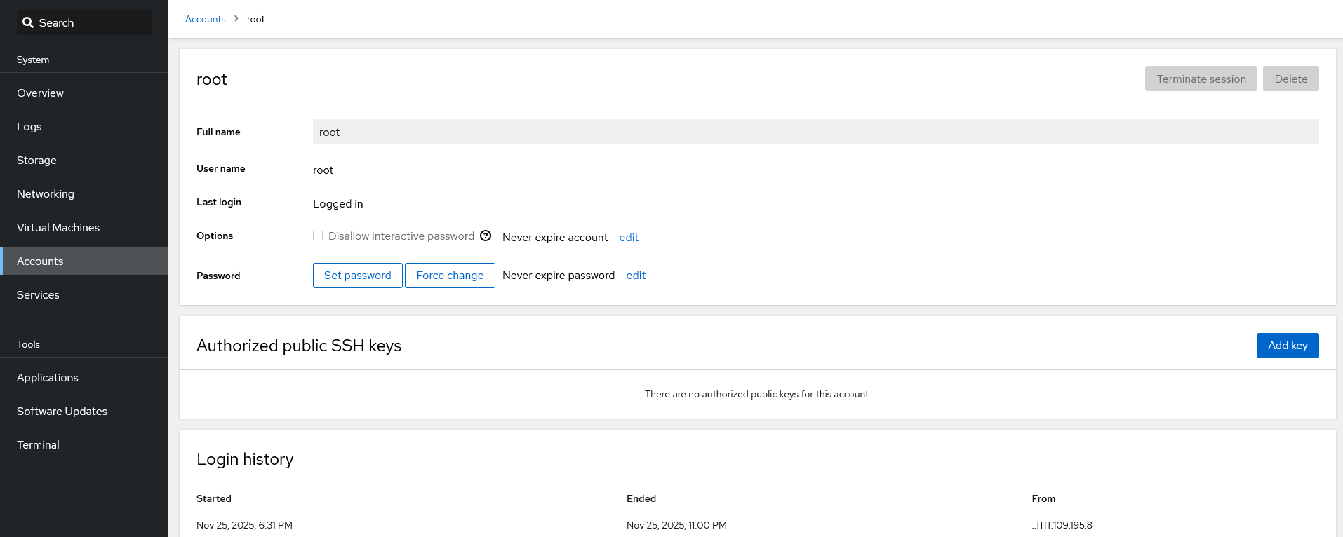 - Link to access the Cockpit web interface: in the webpanel tag (port 9090, HTTPS)