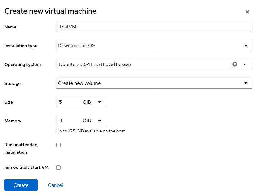 Immediately start VM: leave the checkmark if you want to start the installation immediately, or uncheck it if you need to change settings (e.g., network) before starting.