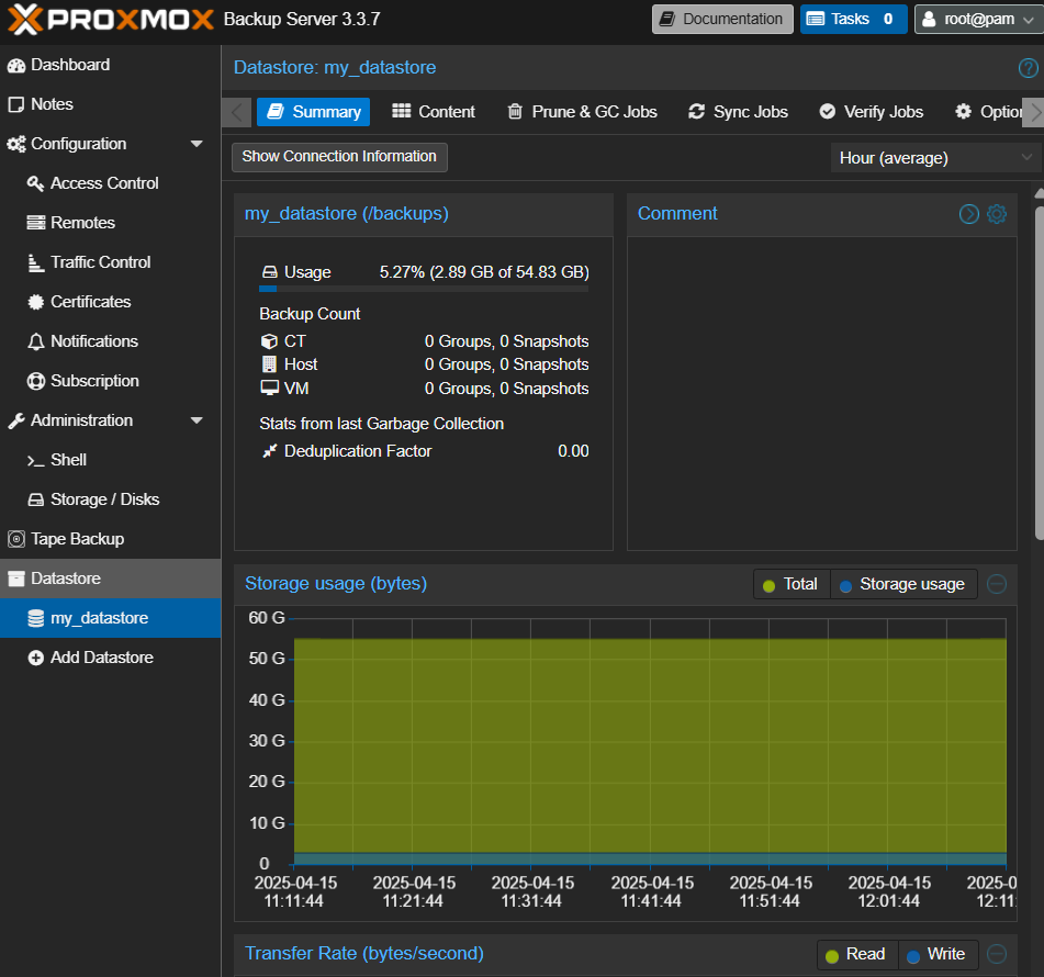Proxmox Backup Server allows you to configure a datastore on a separate disk or in a directory on one disk. To create a datastore: