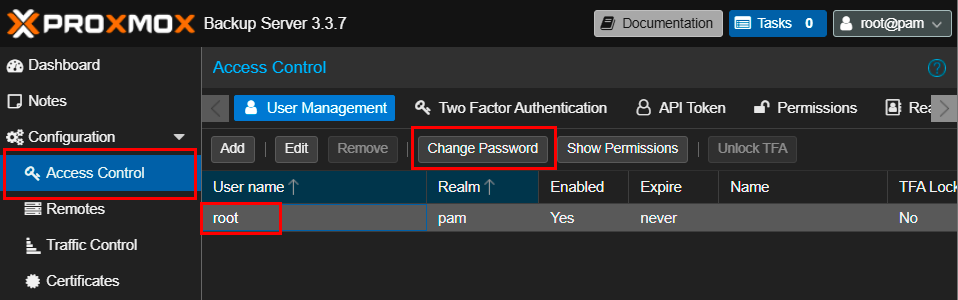 For increased security, it is recommended to create a separate user on PBS with limited rights instead of using the root account.