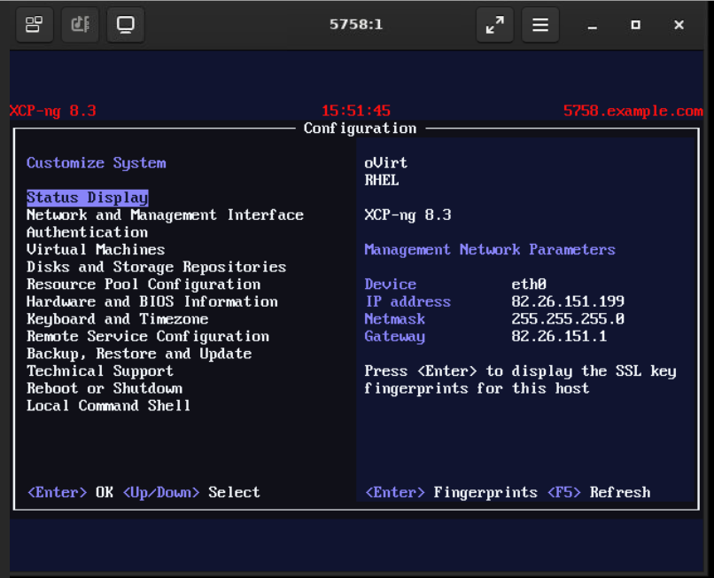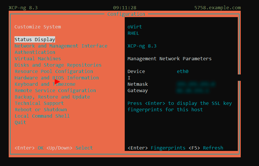 When connecting via SSH or VNC console, you can use xsconsole - the built-in text management console for XCP-ng configuration and host administration.