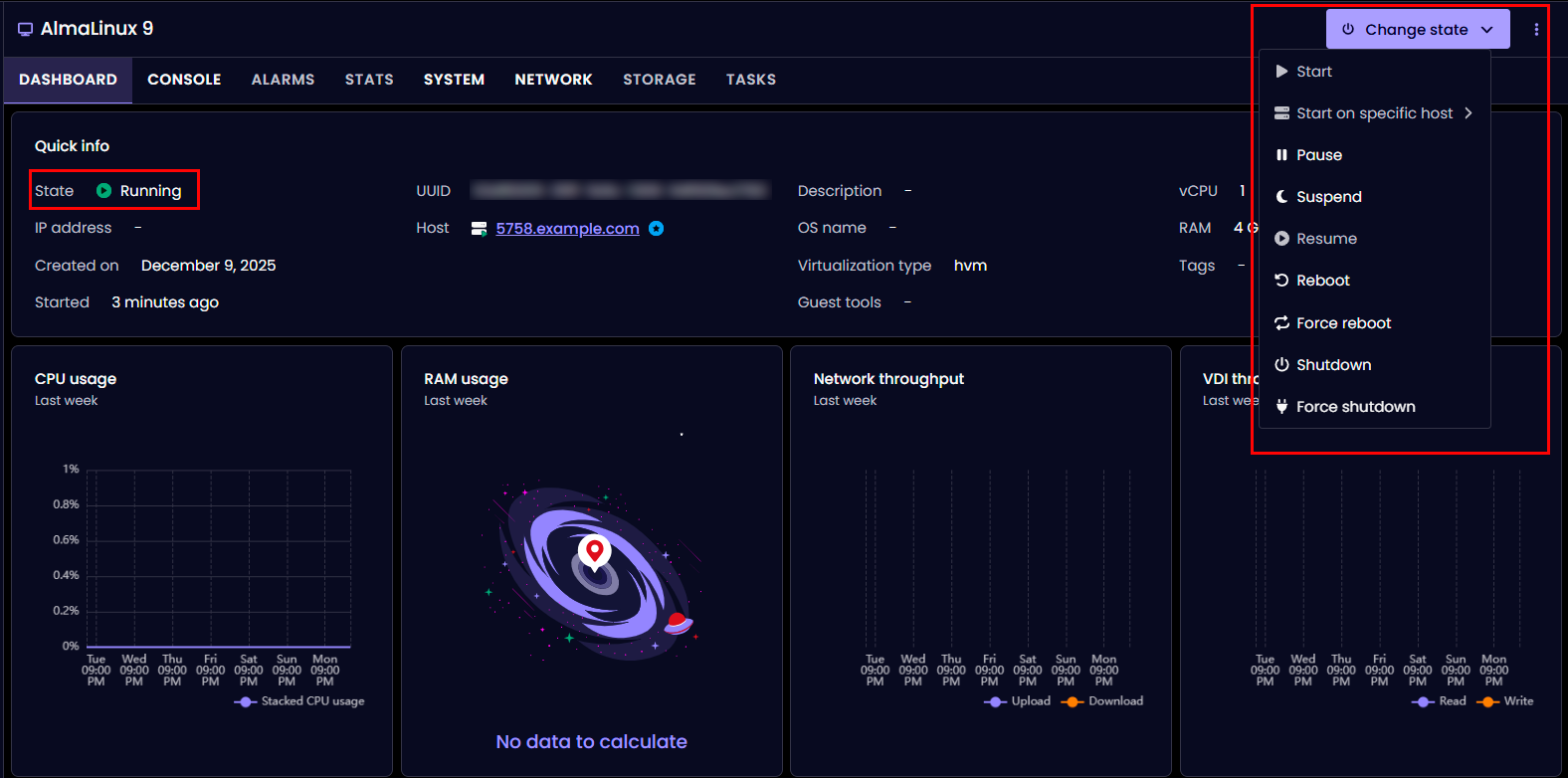 https://<server_IP_address>; - Basic web interface for creating and managing virtual machines;