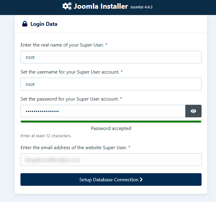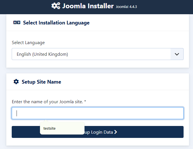 Click the Install Joomla button to complete the pre-configuration.