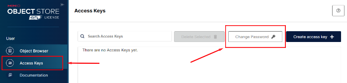 After successful authorization in the panel, you should set new credentials in the Access Keys >> Change Password tab: