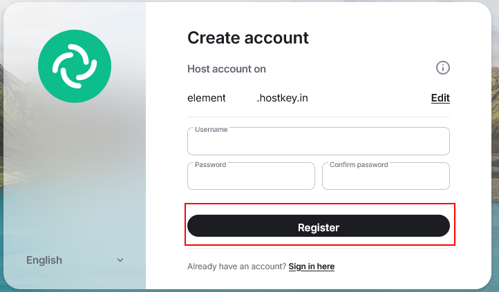 Web interface will be available at: https://element{Server_ID_from_Invapi}.hostkey.in