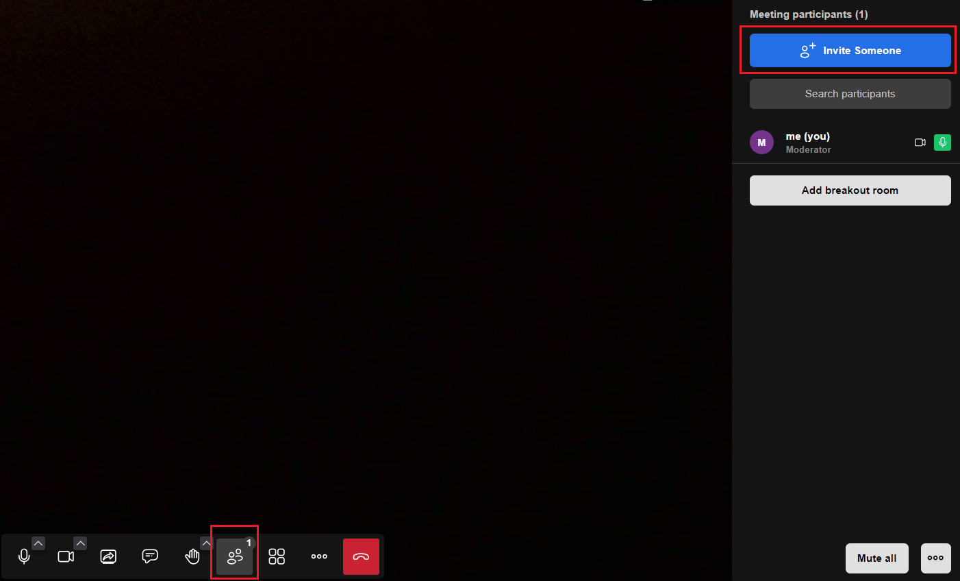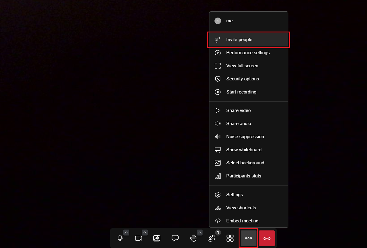 To invite participants to the conference, you can use the (3 Horisontal Dots) >> Invite people buttons:
