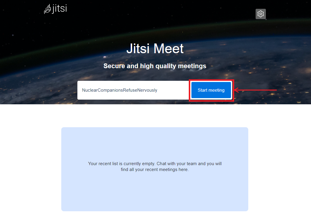 After following the link from the webpanel tag, the start page will open. To start using the service, click the Start meeting button: