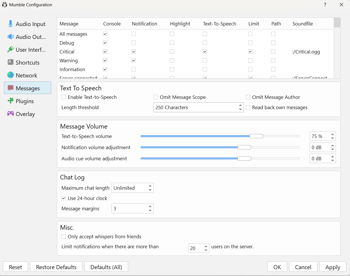For more information on the basic settings of Mumble, see the documentation of the developers.