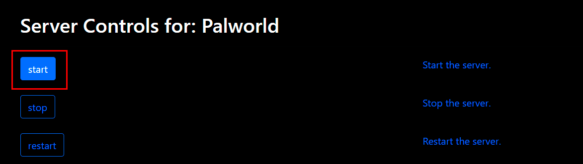 After performing the initial settings, start the server by clicking its name and pressing the