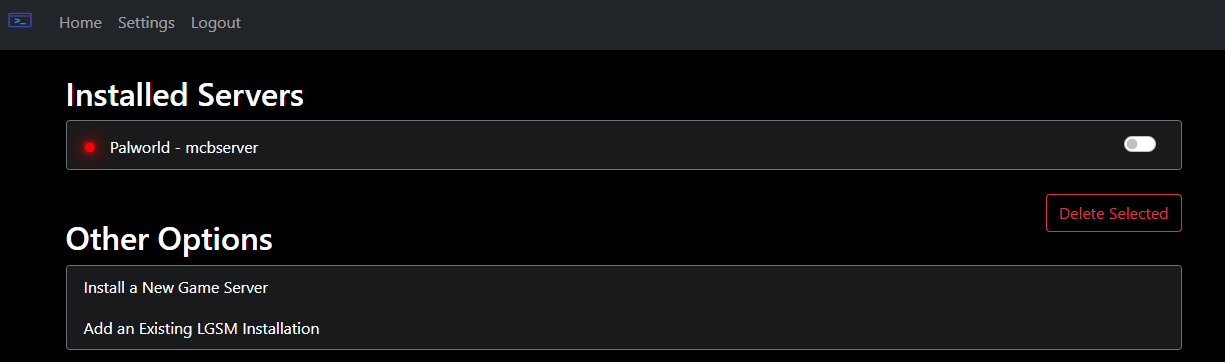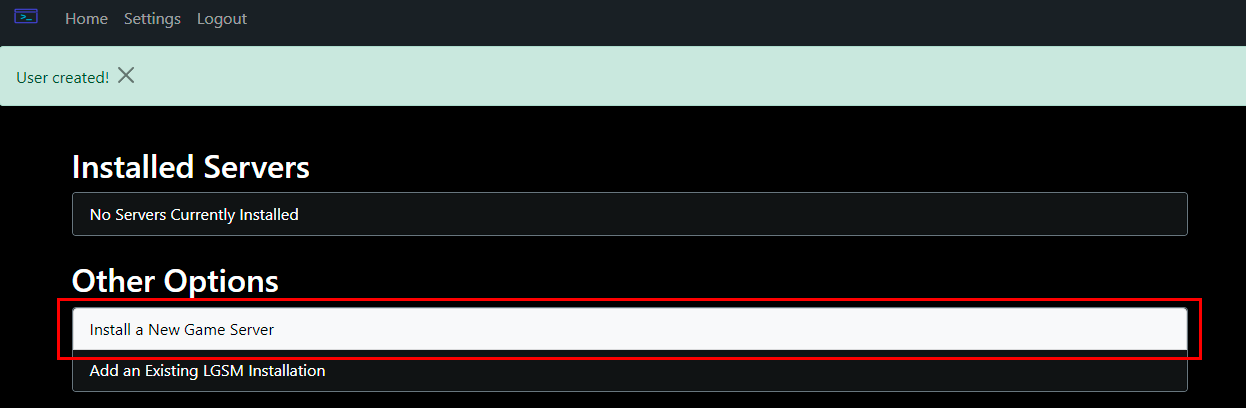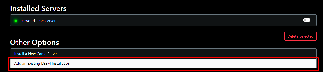 Select the option "Add an Existing LGSM Installation":