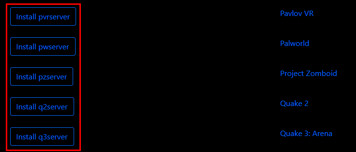 Then choose the game server from the list of available options and start the installation process by clicking the