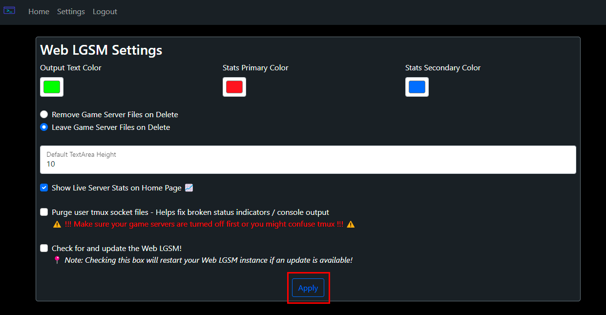 Setting Up and Using Web-LGSM¶