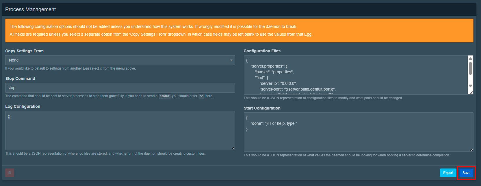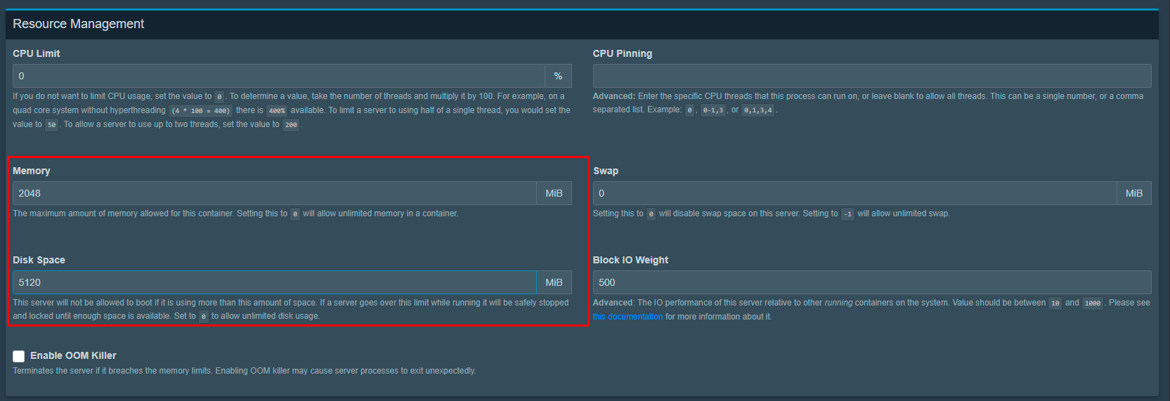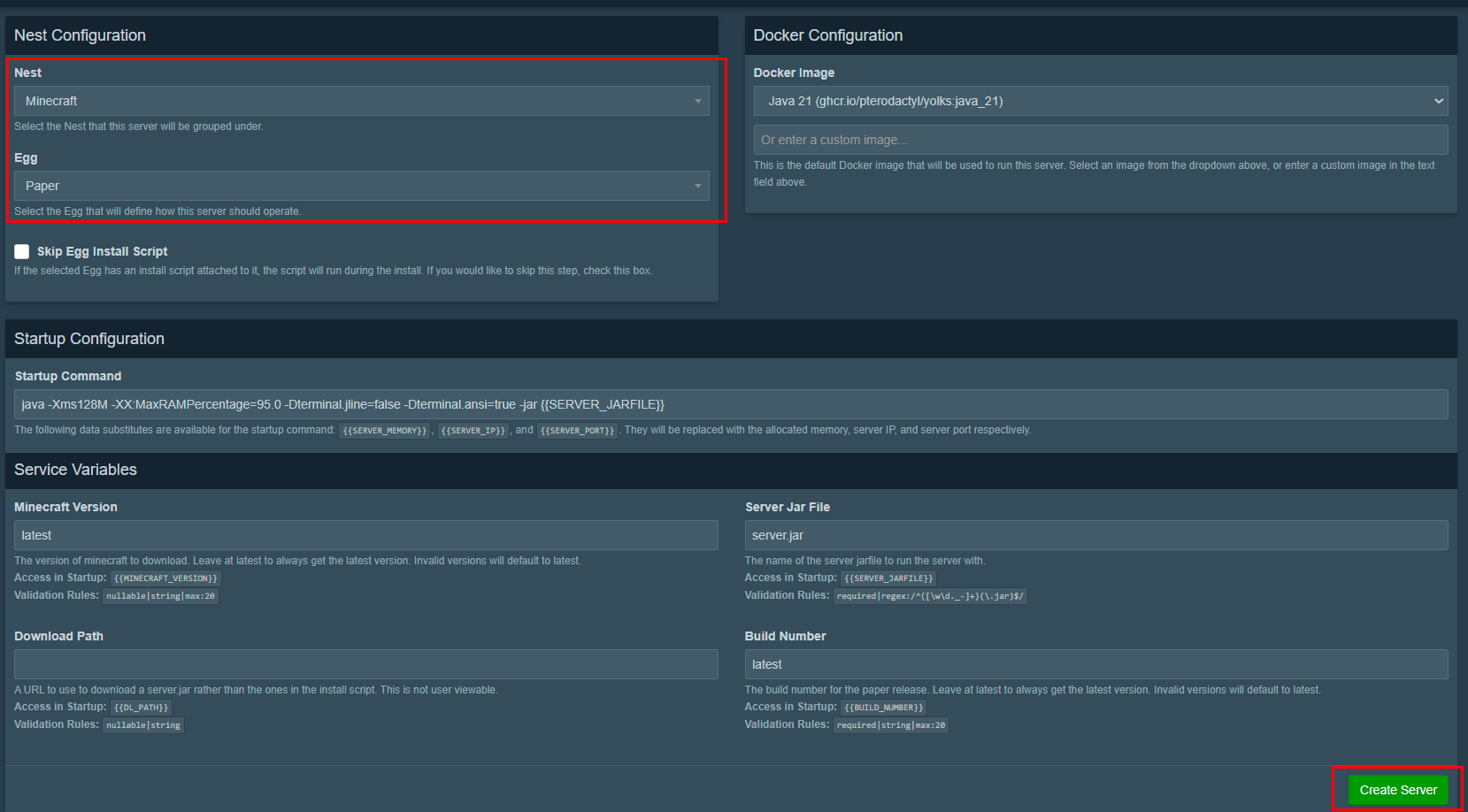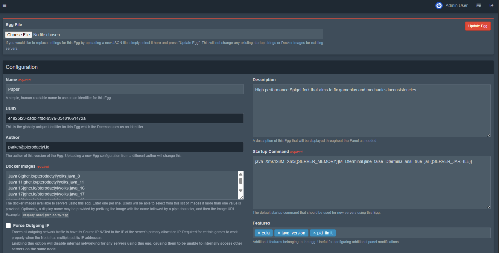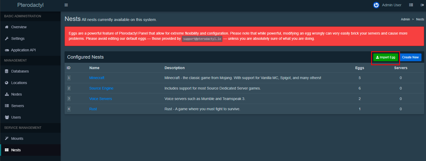 Detailed information on Pterodactyl's main settings is contained in the developers' documentation.