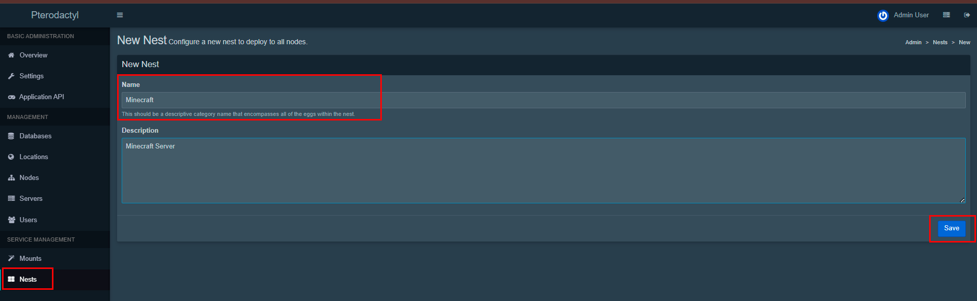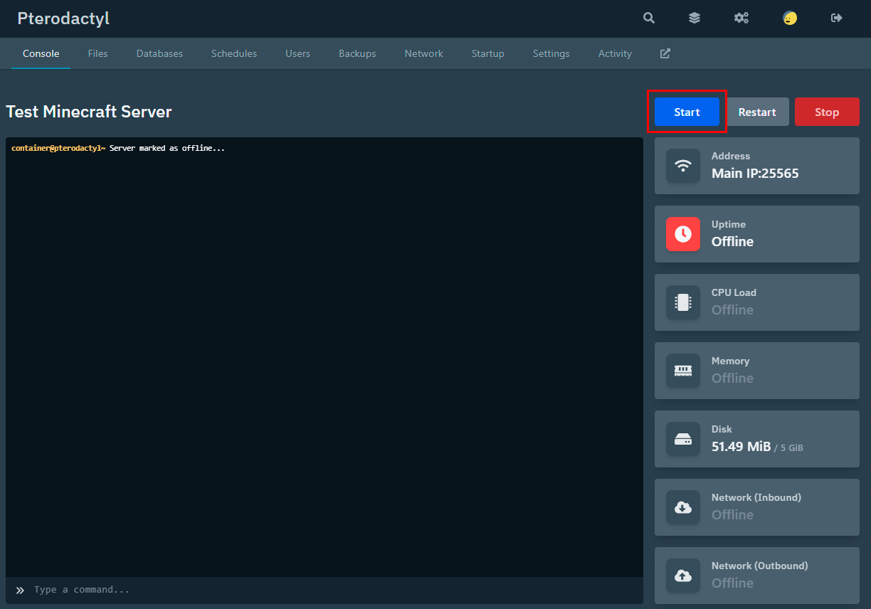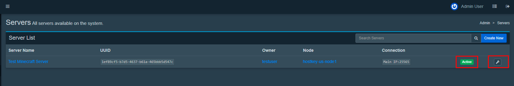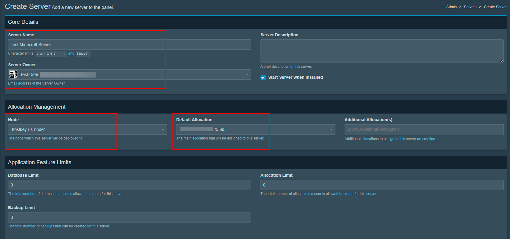 Test Minecraft Server); - Server Owner: select the owner user from the list;