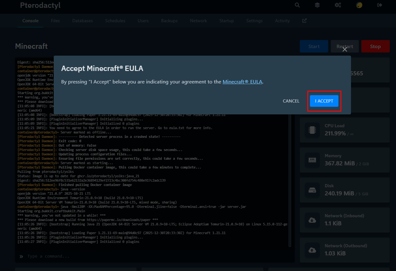 Pterodactyl is a free open-source game server management panel. It enables centralized management of servers for Minecraft, CS2, Rust, and 50+ other games via a web interface.
