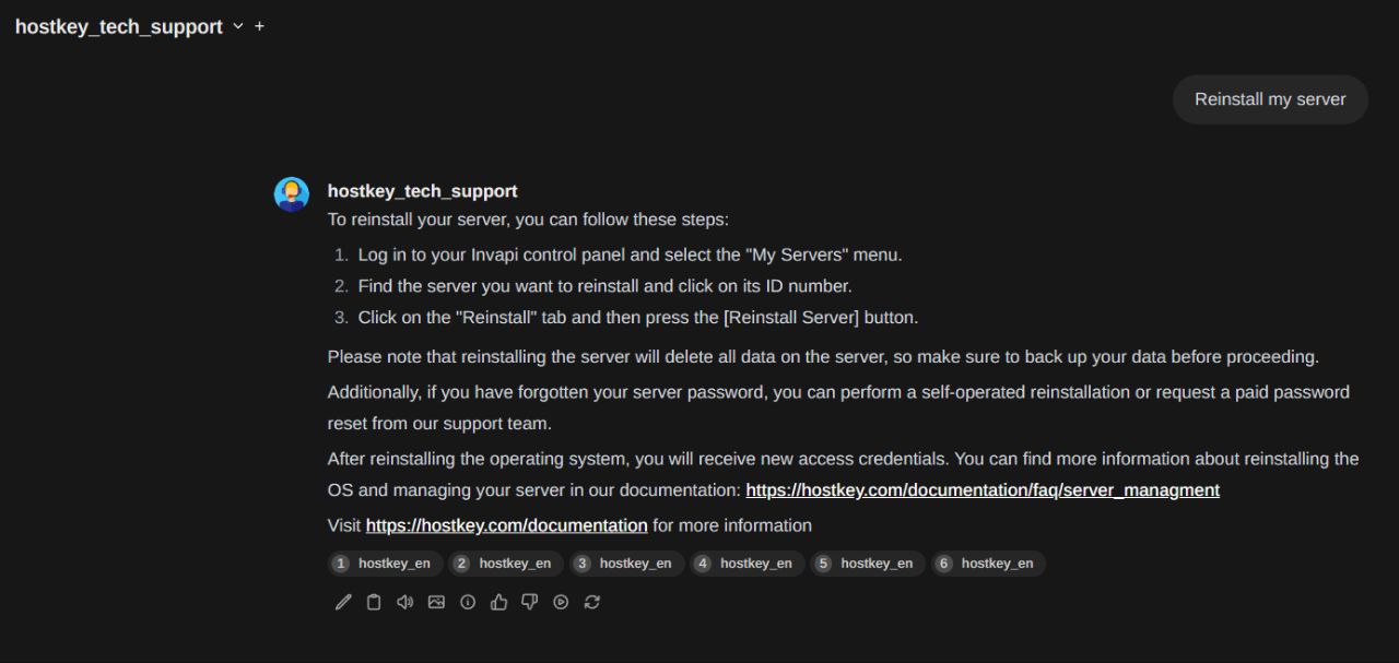 Rent a virtual (VPS) or a dedicated server from HOSTKEY with a pre-installed and ready-to-use Self-hosted AI Chatbot, which can process your data and documents using various LLM models.