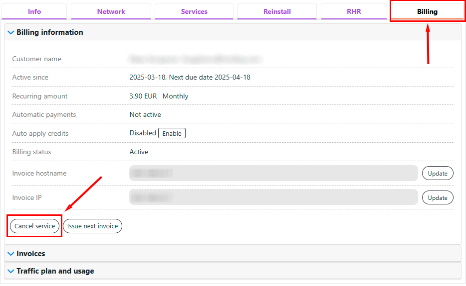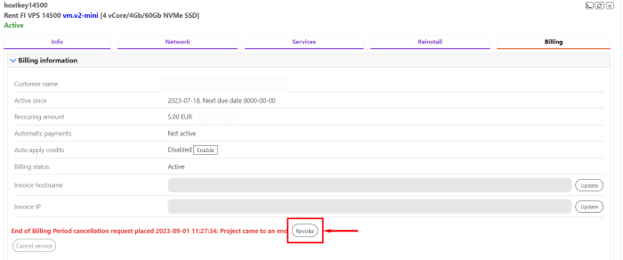 Go to the Billing tab in the specific server management menu: