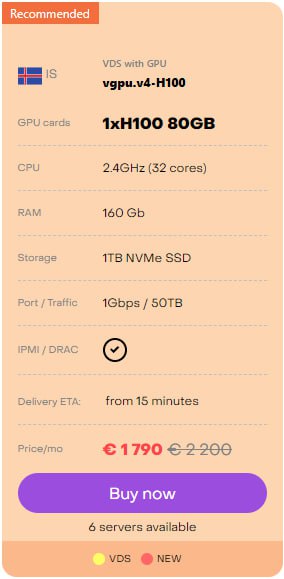 We offer an option of hourly billing for instant servers and virtual servers with GPU cards.